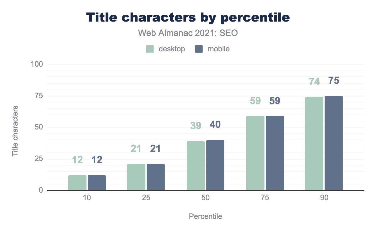 <title>contained 39 and 40 characters on desktop and mobile, respectively. - 10% of pages had