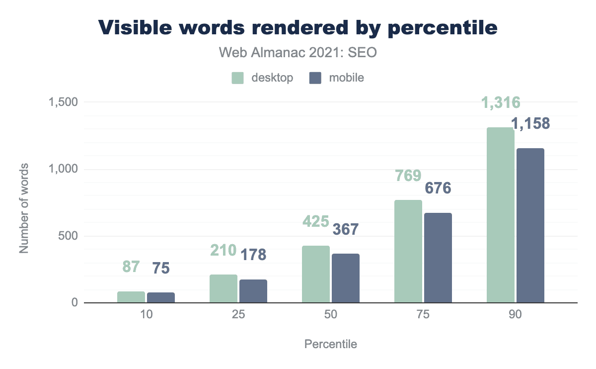 - The median raw mobile page contains 321 words, versus 312 words in 2020.